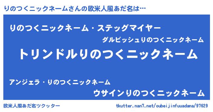 | 男性向けラノベタイトル風あだ名 | 『りのつくニックネーム~年齢イコール彼女いない歴の魔法使い~』 |