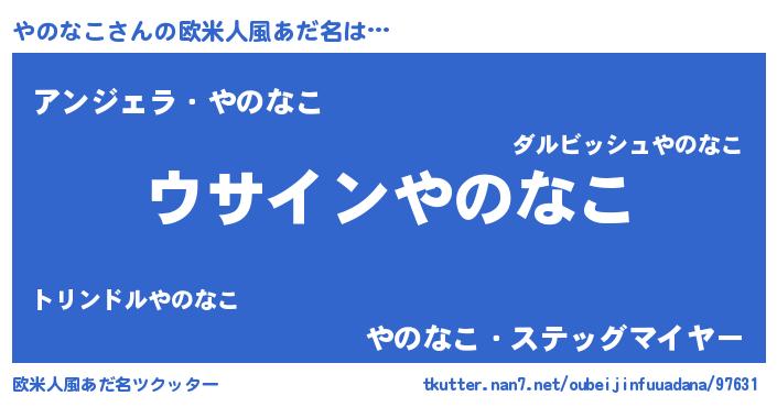 | 男性向けラノベタイトル風あだ名 | 『やのなこの嫁は女の子じゃないと思った?』 |