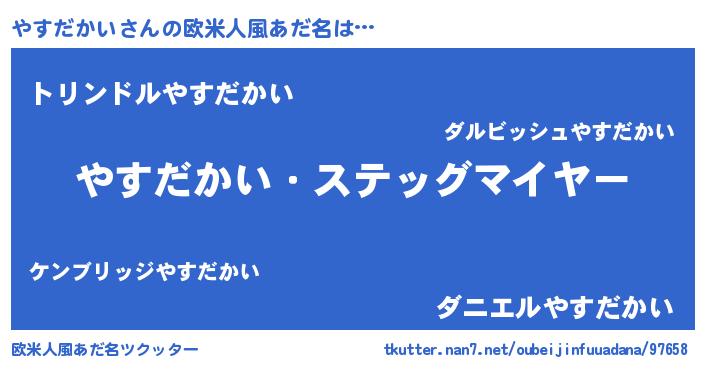 | 男性向けラノベタイトル風あだ名 | 『冴えないやすだかいの育てかた』 |