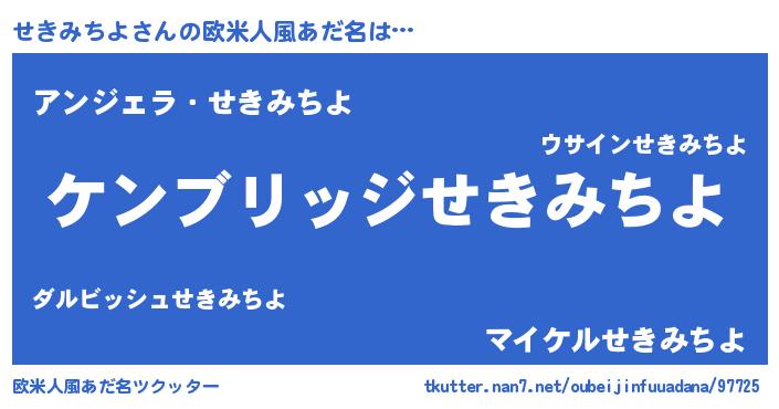 | 男性向けラノベタイトル風あだ名 | 『Re:せきみちよから始める異世界生活』 |