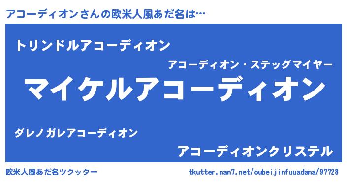 | 男性向けラノベタイトル風あだ名 | 『アコーディオンアートオンライン』 |