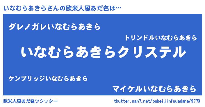 | 男性向けラノベタイトル風あだ名 | 『やはりいなむらあきらの青春ラブコメはまちがっている 』 |