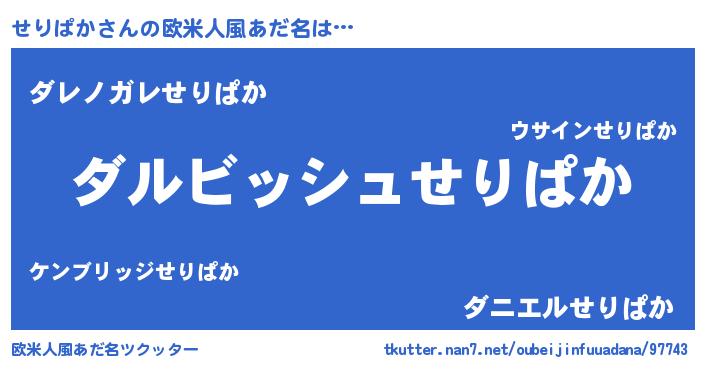 | 男性向けラノベタイトル風あだ名 | 『せりぱかという概念が存在しない退屈な世界 』 |
