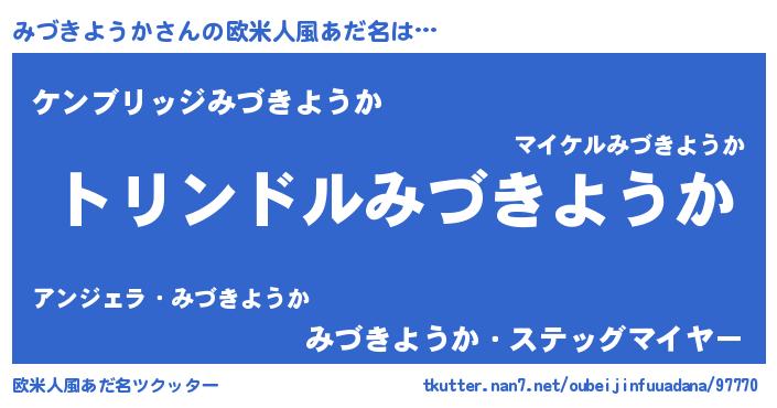 | 男性向けラノベタイトル風あだ名 | 『ミヅキヨウカスレイヤー』 |
