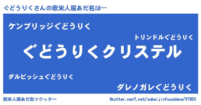 | 女子向けラノベタイトル風あだ名 | 『ぐどうりくの雑貨屋さん』 |
