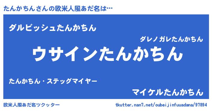| 男性向けラノベタイトル風あだ名 | 『たんかちんの嫁は女の子じゃないと思った?』 |