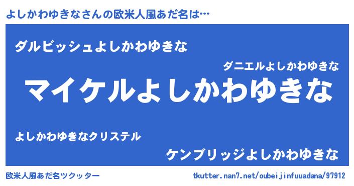 | 男性向けラノベタイトル風あだ名 | 『ヨシカワユキナアートオンライン』 |