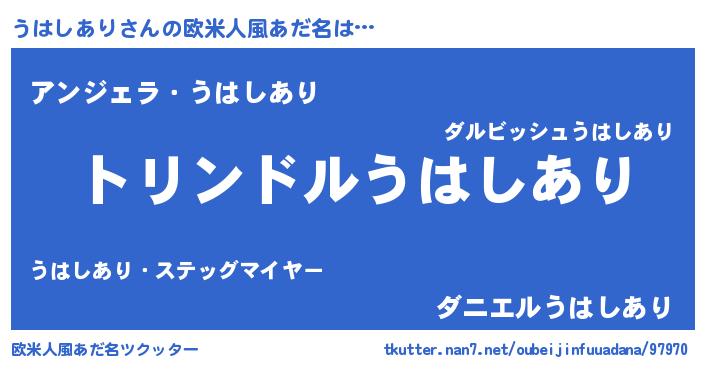 | 男性向けラノベタイトル風あだ名 | 『うはしあり~年齢イコール彼女いない歴の魔法使い~』 |