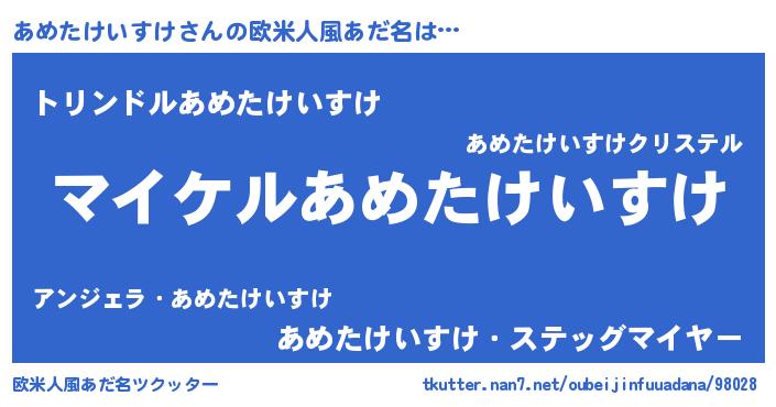 | 男性向けラノベタイトル風あだ名 | 『あめたけいすけの憂鬱』 |