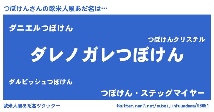 | 意味不明あだ名 | 『住所不定無職つぼけん(95歳)』 |