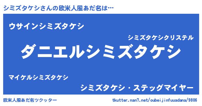 | 女子向けラノベタイトル風あだ名 | 『シミズタケシ夫妻のなれそめ』 |
