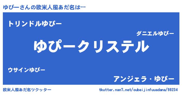 | 女子向けラノベタイトル風あだ名 | 『ゆぴーの雑貨屋さん』『ゆぴー恋絵巻』 |