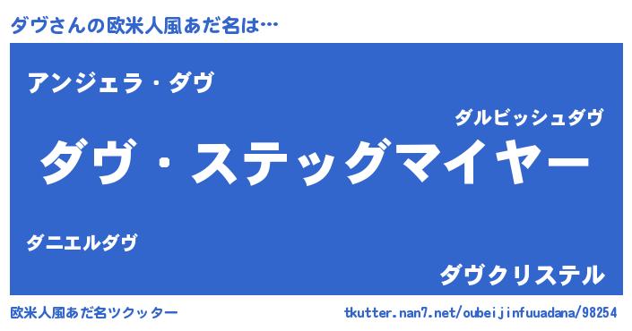 | 男性向けラノベタイトル風あだ名 | 『うちのダヴが世界を掌握している!』 |