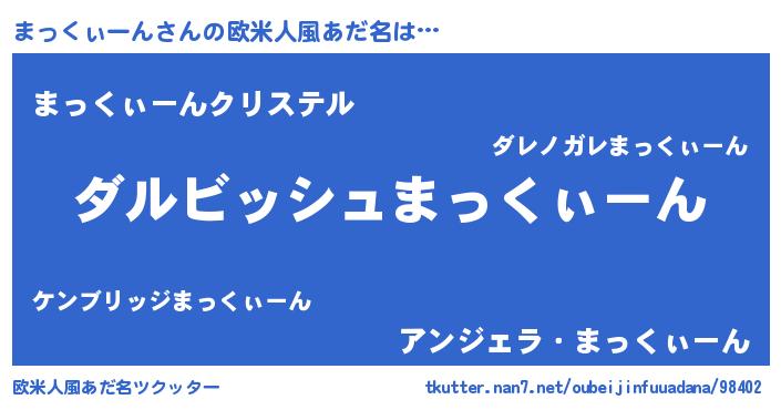 | 胡散臭い通販商品みたいなあだ名 | 『絶対に幸福をもたらす水素水…その名も「まっくぃーん」』 |
