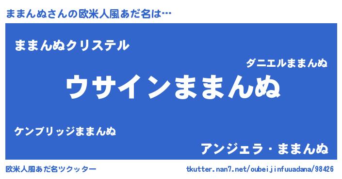 | 男性向けラノベタイトル風あだ名 | 『ダンジョンにままんぬを求めるのは間違っているだろうか』 |