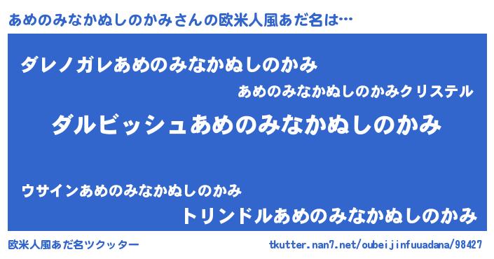 | ヘコむあだ名 | 『あめのみなかぬしのかみ(震え声)』 |