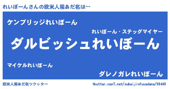 | 男性向けラノベタイトル風あだ名 | 『れいぼーんという概念が存在しない退屈な世界 』 |