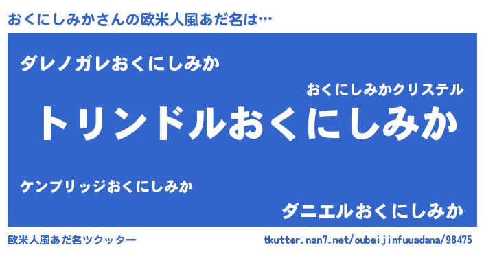 | 男性向けラノベタイトル風あだ名 | 『転生したらおくにしみかだった件』 |