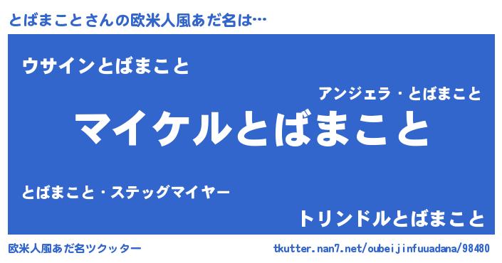 | ポケモン風あだ名 | 『トバチュウ』『ヒトバマコト』 |