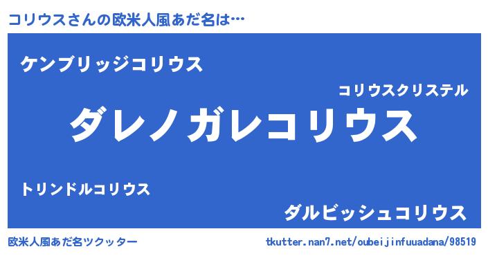 | 意味不明あだ名 | 『住所不定無職コリウス(81歳)』 |