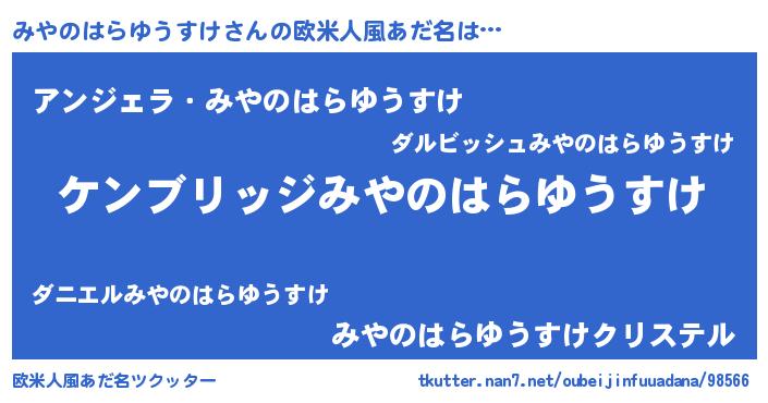 | 男性向けラノベタイトル風あだ名 | 『Re:みやのはらゆうすけから始める異世界生活』 |