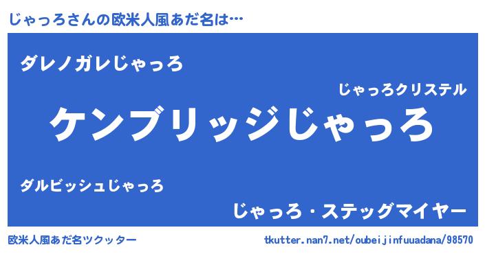 | 男性向けラノベタイトル風あだ名 | 『魔法科高校のじゃっろ』 |