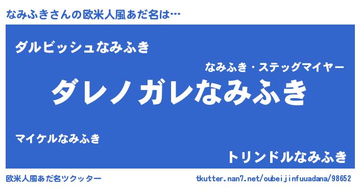 | 男性向けラノベタイトル風あだ名 | 『魔弾の王となみふき』『なみふきの憂鬱』 |