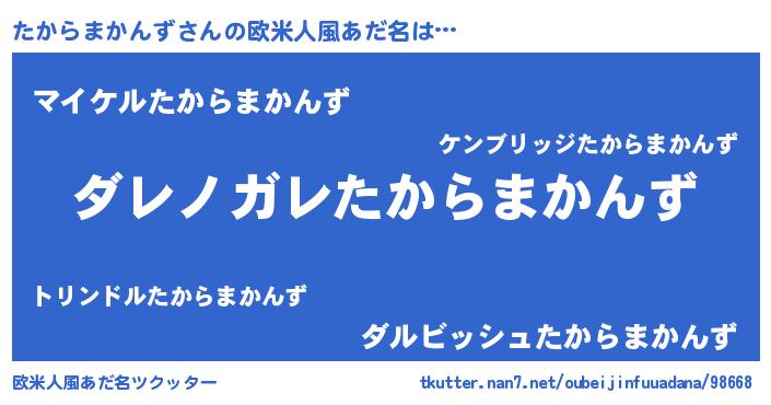 | 男性向けラノベタイトル風あだ名 | 『この素晴らしい世界にたからまかんずを!』 |