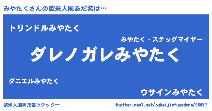 | 男性向けラノベタイトル風あだ名 | 『魔弾の王とみやたく』 |