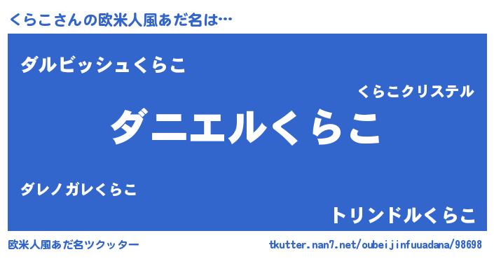 | 女子向けラノベタイトル風あだ名 | 『死神くらこの再婚』『くらこ伯爵の花嫁』 |