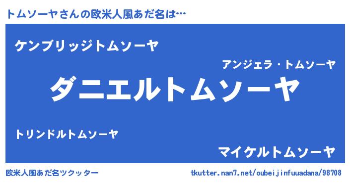 | ヘコむあだ名 | 『トムふぇ~』『トムソーヤ(爆)』 |