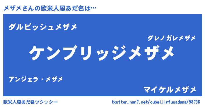 | 意味不明あだ名 | 『自称メザメ』『永久保存メザメ』 |