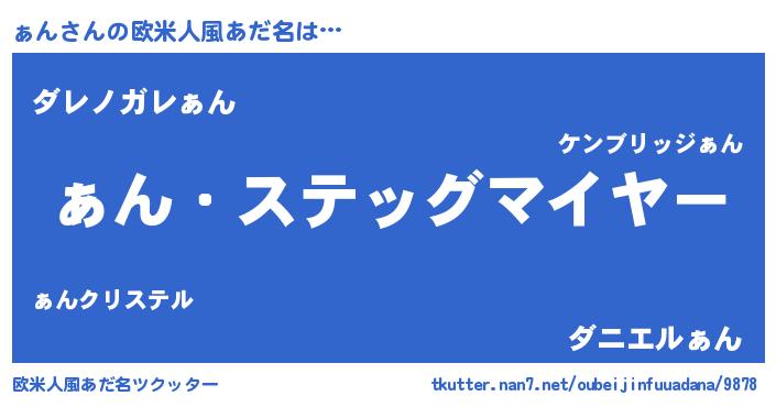 | 自動車の名前っぽいあだ名 | 『フェァーン』『ァウディ』『ァンR』 |