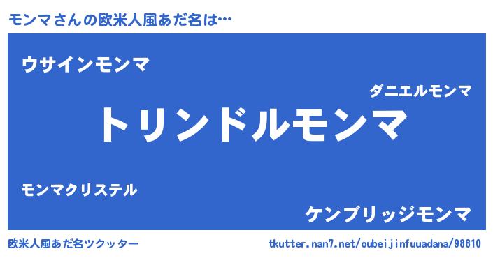 | 男性向けラノベタイトル風あだ名 | 『転生したらモンマだった件』 |