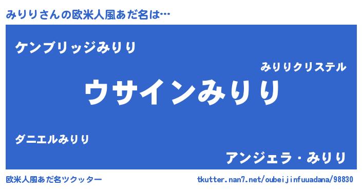 | ヘコむあだ名 | 『みりを』『牛乳』『みりにー』 |