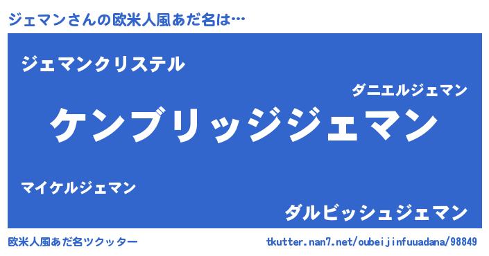 | 男性向けラノベタイトル風あだ名 | 『Re:ジェマンから始める異世界生活』 |