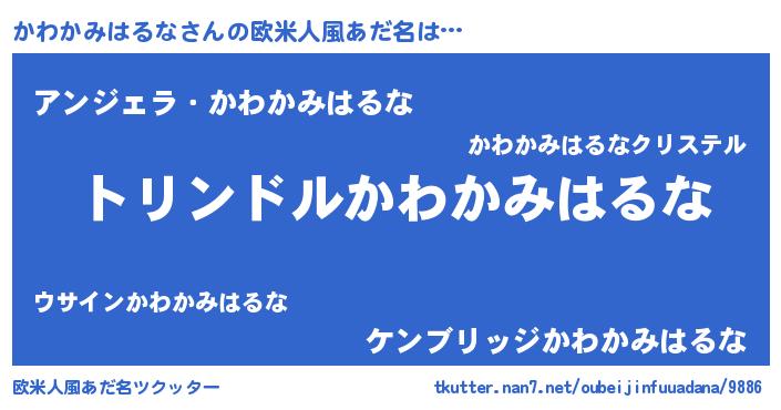 | 男性向けラノベタイトル風あだ名 | 『転生したらかわかみはるなだった件』 |