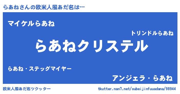 | ファンタジー風あだ名 | 『エターナルラアネー』『ラアフェル』 |