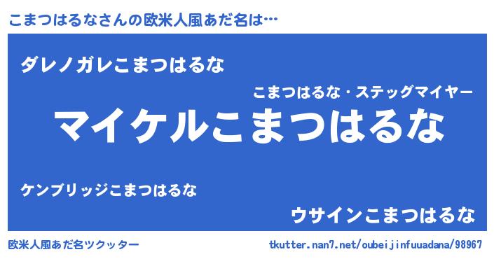| 胡散臭い通販商品みたいなあだ名 | 『億万長者になれる霊験あらたかなお札…その名も「こまつはるな」』 |