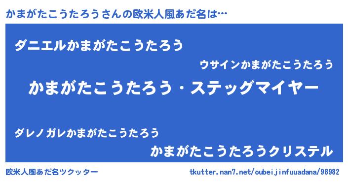 | 意味不明あだ名 | 『眠気覚ましガムかまがたこうたろう味』 |