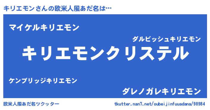 | 女子向けラノベタイトル風あだ名 | 『キリエモンの婚約者』 |