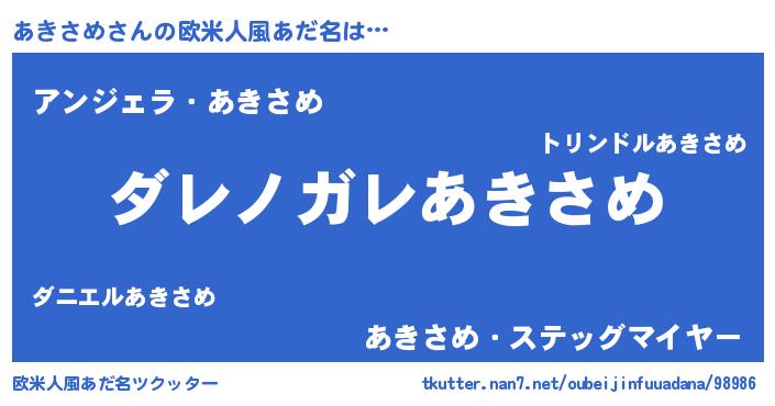 | ヒーロー風カッコイイあだ名 | 『仮面アキダー』『友情の使者あきさめ』 |