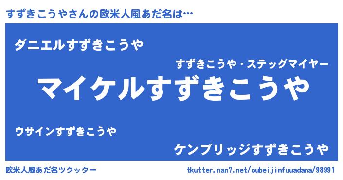 | 女子向けラノベタイトル風あだ名 | 『誰かこのすずきこうやを説明してください! ~契約から始まるウェディング~』 |