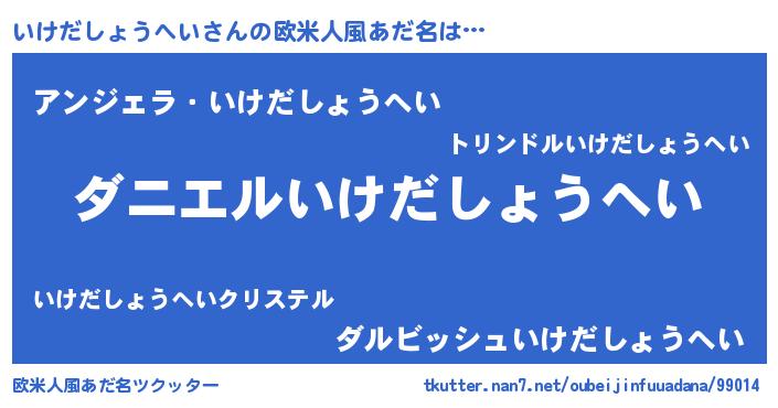 | 男性向けラノベタイトル風あだ名 | 『ノーゲーム・ノーイケダショウヘイ』 |