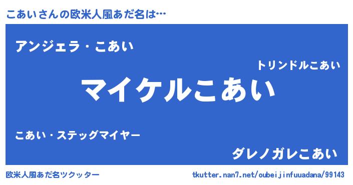 | 男性向けラノベタイトル風あだ名 | 『こあいの憂鬱』『魔弾の王とこあい』 |