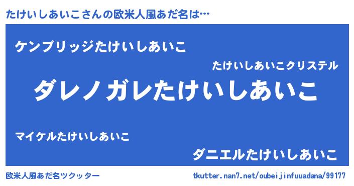 | 意味不明あだ名 | 『住所不定無職たけいしあいこ(4歳)』 |