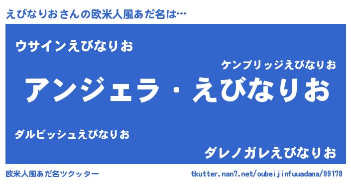 | 男性向けラノベタイトル風あだ名 | 『えびなりおに滅ぼされるだけの簡単なお仕事です』 |