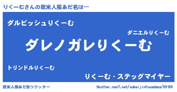 | 女子向けラノベタイトル風あだ名 | 『乙女ゲームの破滅フラグしかない悪役りくーむに転生してしまった…』 |