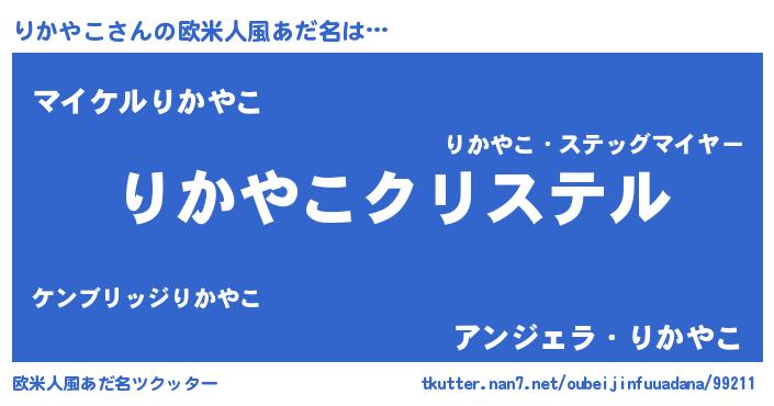 | 女子向けラノベタイトル風あだ名 | 『りかやこの雑貨屋さん』『闇のりかやこ』 |