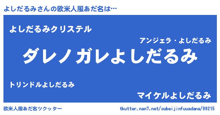 | 女子向けラノベタイトル風あだ名 | 『乙女ゲームの破滅フラグしかない悪役よしだるみに転生してしまった…』 |
